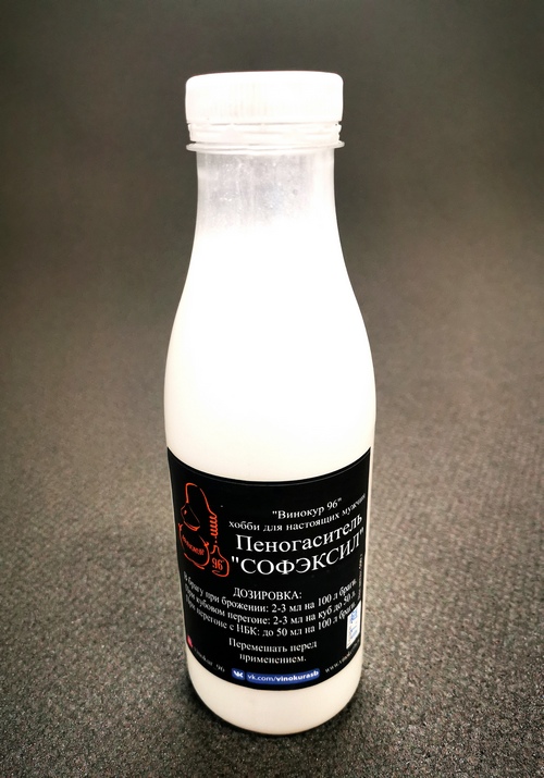 - Эффективен при работе с НБК, некоторые браги (пиво, ржаная брага и т.д.) без пеногасителя вообще не перегоняются из-за очень сильного пеноуноса (происходит "захлеб" колонны). Дозировка подбирается индивидуально, чаще всего 30-40 мл/100 литров, иногда до 50 мл. Пеногаситель сразу готов к употреблению. Перед использованием необходимо разбавить небольшим количеством теплой воды, после добавить в брагу и перемешать.